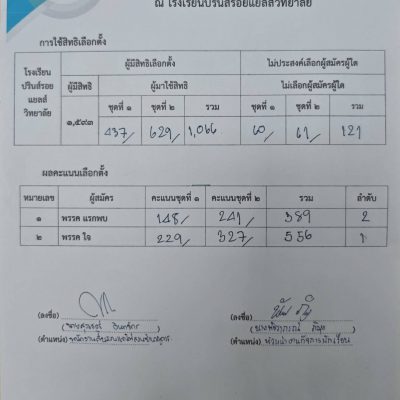 ระดับมัธยมศึกษาตอนปลาย จัดให้มีการเลือกตั้งคณะกรรมการสภานักเรียน ปีการศึกษา 2567 เมื่อวันที่ 23 เมษายน 2567 มีผู้สมัครจำนวน 2 พรรค พรรคที่ 1 พรรคแรกพบ พรรคที่ 2 พรรคใจ โดย พรรคใจ ชนะการเลือกตั้งด้วยคะแนน 556 คะแนน