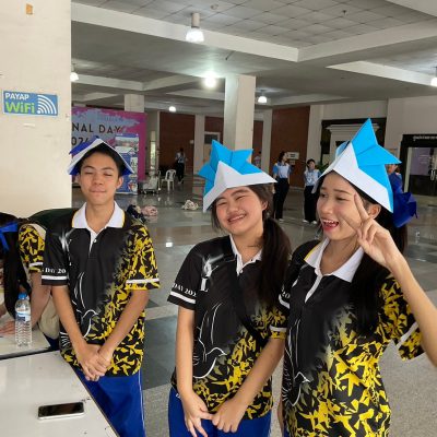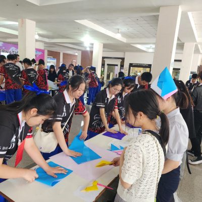 ฐาน 2 เรียนรู้วัฒนธรรม – วิทยากรอธิบายลักษณะของวัฒนธรรมเอเชียกับไทยคร่าวๆ ผ่านการทำกิจกรรมตัดตุง พับกระดาษออริกามิ และประกวดผลงานกลุ่ม