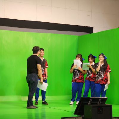 ฐาน 4 ฝึกการพูด ปรับบุคลิกภาพในการพูด – มีหัวข้อให้นักเรียนปฏิบัติ ได้ฝึกทักษะการคิดสคริปต์ และฝึกพูดผ่านการถ่ายทอดทางวิทยุและโทรทัศน์