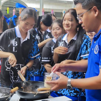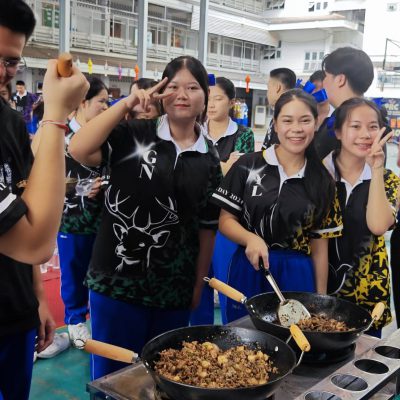 วันที่ 23 สิงหาคม 2567 ระดับชั้นมัธยมศึกษาปีที่ 6 รุ่นลินน์ (Lynn) ได้จัดกิจกรรม “ค่ายทักษะชีวิต” ประจำปีการศึกษา 2567 ณ บริเวณลานเพชรรัตน-สุวัทนา อาคาร PRC ยิมเนเซียม 2000 และใต้อาคารกำราบ ไชยาพันธ์ โดยนักเรียนได้เรียนรู้ทักษะชีวิตด้านภูมิปัญญาท้องถิ่นล้านนา ผ่านกิจกรรมการประกอบอาหารพื้นเมือง ได้แก่ ลาบคั่ว น้ำพริกอ่อง น้ำพริกหนุ่ม ข้าวนึ่ง หมูทอด และกิจกรรมการประดิษฐ์งานหัตถศิลป์พื้นถิ่นล้านนา ได้แก่ งานจักสานไม้ไผ่ การทำตุงนักษัตร