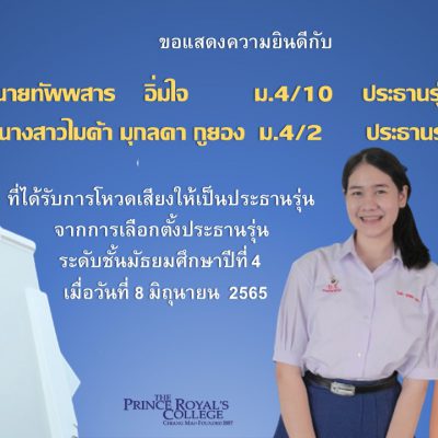 ผลการเลือกตั้งประธานรุ่น ม.4 ปีการศึกษา 2565
