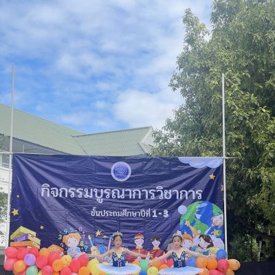 ระดับประถมศึกษาปีที่ 1-3 ได้จัดกิจกรรมบูรณาการวิชาการ ระหว่างวันที่ 29-30 สิงหาคม 2567 เพื่อเปิดโอกาสให้ผู้เรียนได้พัฒนาสมรรถนะด้านภาษา การคิดคำนวณ การคิดขั้นสูง มีสุขภาวะที่ดี มีสุนทรียภาพ และสามารถอยู่ร่วมกันกับธรรมชาติและสิ่งแวดล้อมได้อย่างยั่งยืน โดยจัดทำเป็นรูปแบบกิจกรรมฐานตามกลุ่มสาระการเรียนรู้วิชาต่างๆ ได้แก่ กิจกรรมบูรณาการพลศึกษา กิจกรรมบูรณาการภาษาไทย กิจกรรมบูรณาการภาษาต่างประเทศ กิจกรรมบูรณาการวิทยาศาสตร์และเทคโนโลยี กิจกรรมบูรณาการคณิตศาสตร์ เป็นต้น