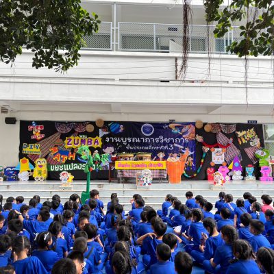 ระดับประถมศึกษาปีที่ 1-3 ได้จัดกิจกรรมบูรณาการวิชาการ ระหว่างวันที่ 29-30 สิงหาคม 2567 เพื่อเปิดโอกาสให้ผู้เรียนได้พัฒนาสมรรถนะด้านภาษา การคิดคำนวณ การคิดขั้นสูง มีสุขภาวะที่ดี มีสุนทรียภาพ และสามารถอยู่ร่วมกันกับธรรมชาติและสิ่งแวดล้อมได้อย่างยั่งยืน โดยจัดทำเป็นรูปแบบกิจกรรมฐานตามกลุ่มสาระการเรียนรู้วิชาต่างๆ ได้แก่ กิจกรรมบูรณาการพลศึกษา กิจกรรมบูรณาการภาษาไทย กิจกรรมบูรณาการภาษาต่างประเทศ กิจกรรมบูรณาการวิทยาศาสตร์และเทคโนโลยี กิจกรรมบูรณาการคณิตศาสตร์ เป็นต้น