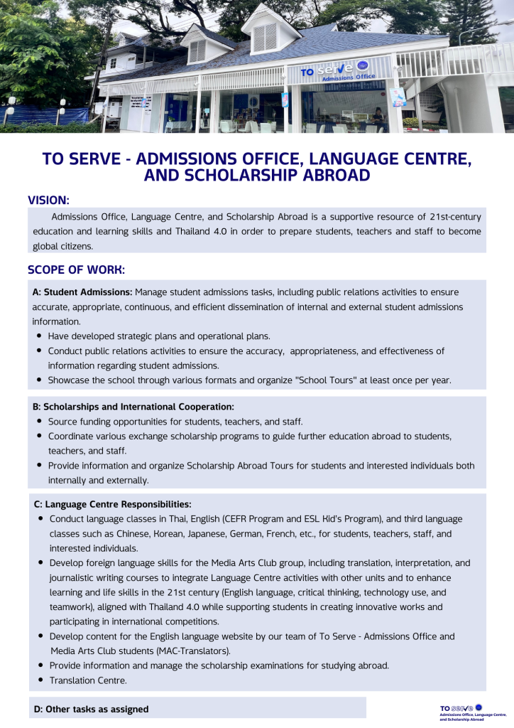 To Serve - Admissions Office, Language Centre and Scholarship Abroad